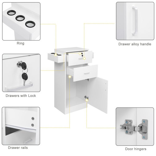 15 cm P2 density board pitted surface 2 drawers 1 door 6 hair dryer double ear cabinet with lock Salon cabinet white