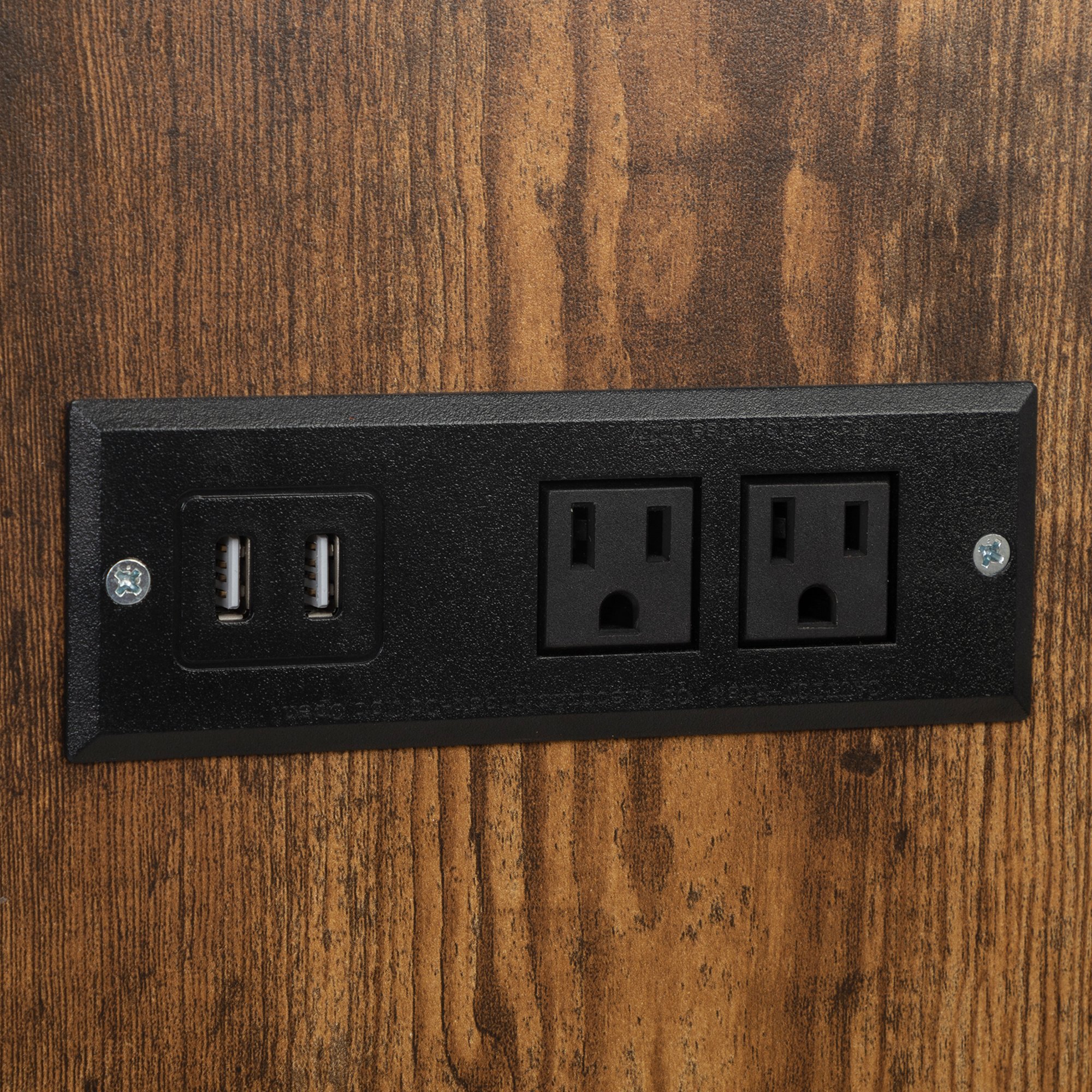 Beauty Salon Trolley; Hair-dressing Tool Storage Cart with Hair Dryer Holders and Power Strip; Rustic Brown
