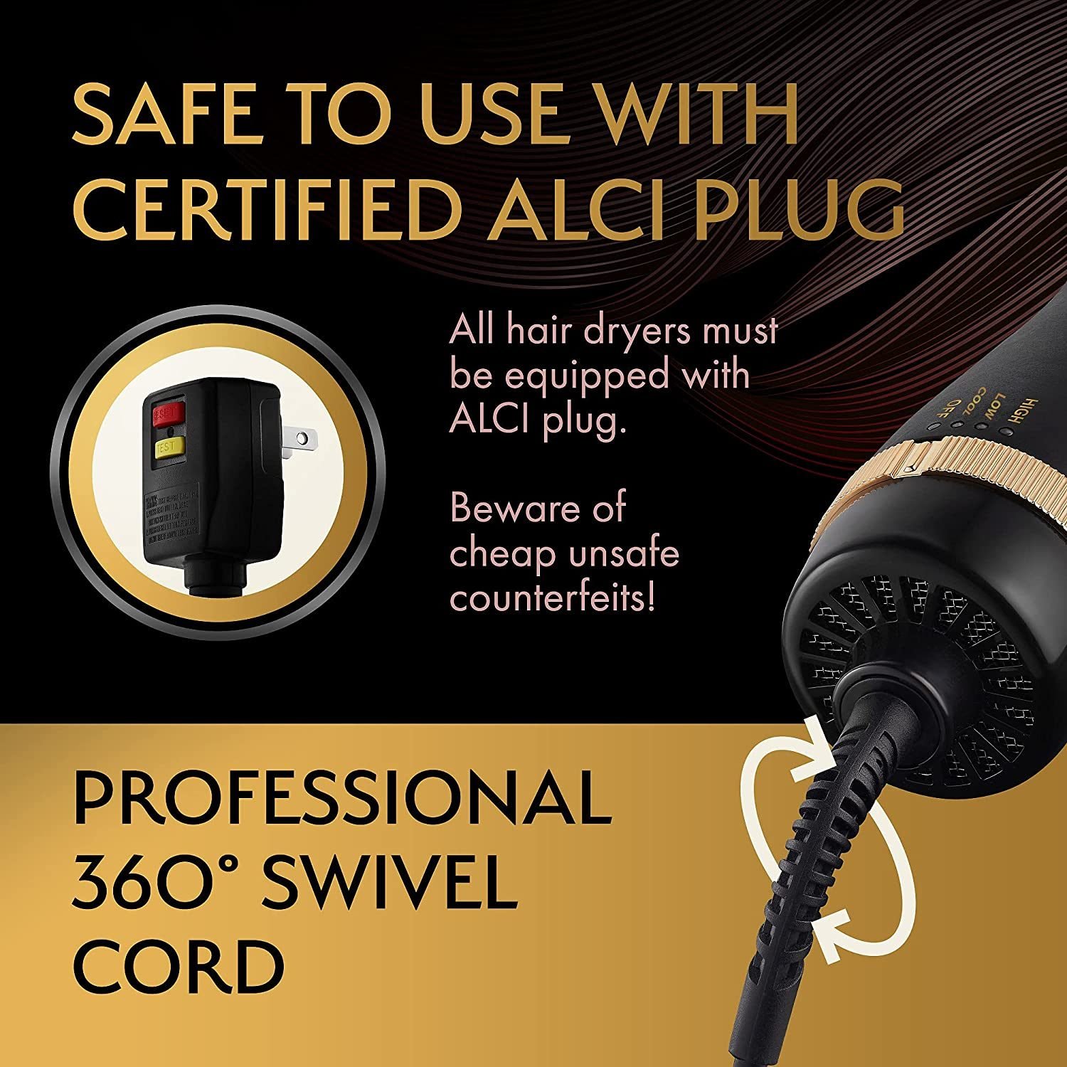 EVERY ITEM CHECKED FOR QUALITY. The styling brush feels great in the hand, and its 360° swivel cord is light and ergonomic. For safety, we added an ALCI plug to this hair brush dryer: it’s a circuit breaker for the current to be stable. Enjoy having good hair—every day.