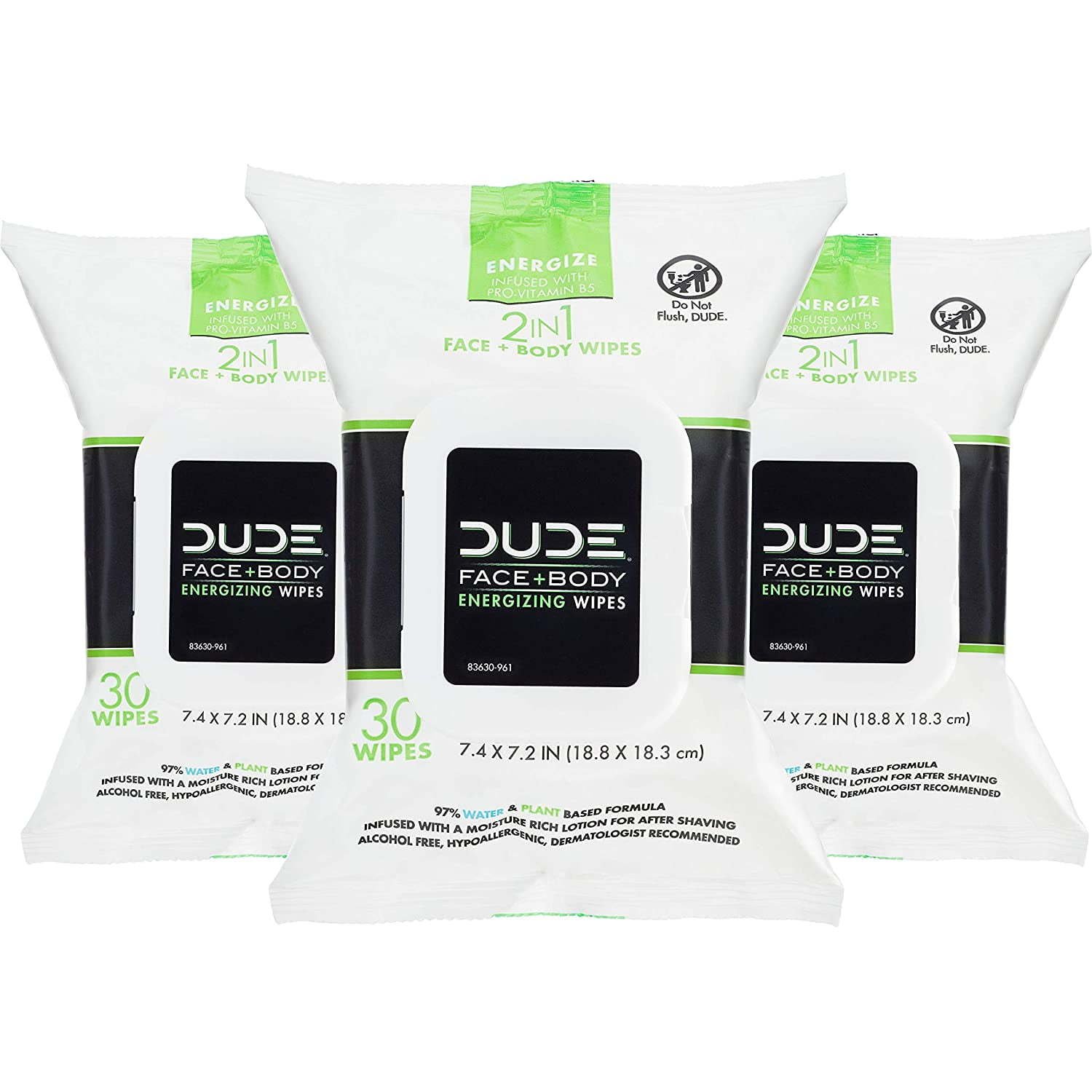 DUDE Wipes Face and Body Wipes, 3 Pack, 90 Wipes DUDE Wipes Face and Body Wipes, 3 Pack, 90 Wipes DUDE Wipes Face and Body Wipes, 3 Pack, 90 Wipes