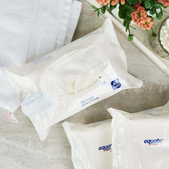 Equate Fragrance Free Flushable Wipes, 3 Resealable Packs (144 Total Wipes) Equate Fragrance Free Flushable Wipes, 3 Resealable Packs (144 Total Wipes) Equate Fragrance Free Flushable Wipes, 3 Resealable Packs (144 Total Wipes)