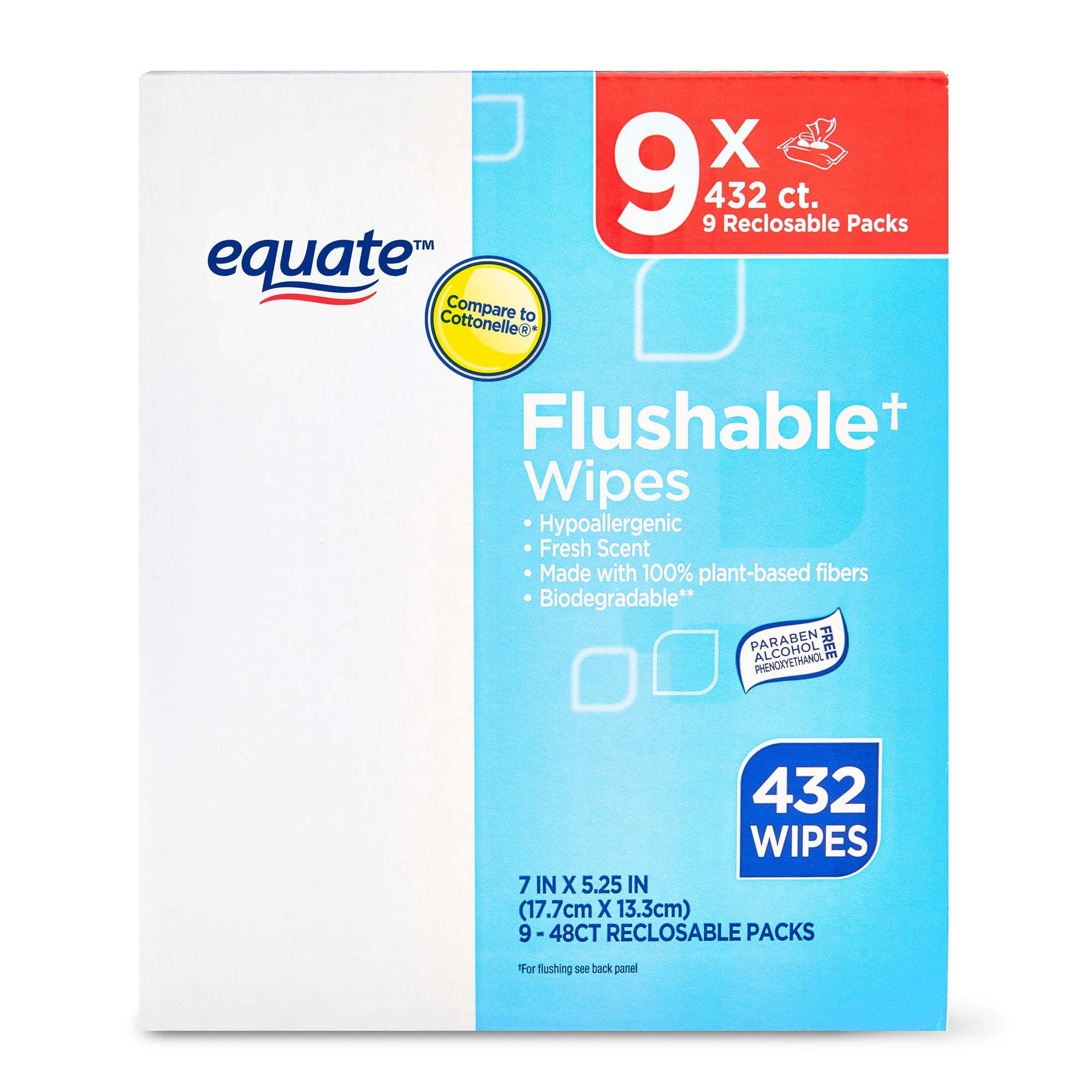 Equate Fresh Scent Flushable Wipes, 9 Resealable Packs of 48 Wipes (432 Total Wipes) Equate Fresh Scent Flushable Wipes, 9 Resealable Packs of 48 Wipes (432 Total Wipes) Equate Fresh Scent Flushable Wipes, 9 Resealable Packs of 48 Wipes (432 Total Wipes)