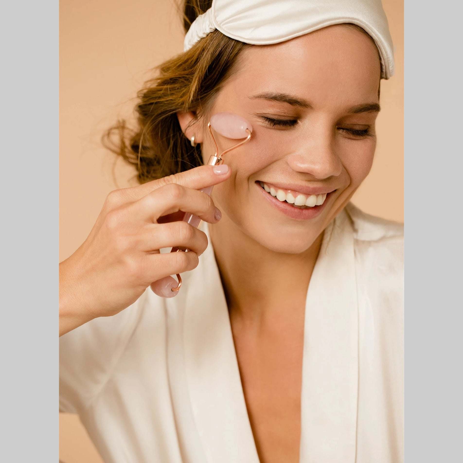 Have asoft glowing face without any blemishes and fine lines with this gem roller...Moisturize your skin with your favorite moisturizer and start rolling the natural gem rollerall over your chin; cheeks; forehead; and the neck... Your skin will not only absorb the moisturizer; but it will also receive the ions from the pure gems; giving it a fresher and more youthful appearance! Rolling the gem starts reducing any fine lines and wrinkles; it flushes and detoxes any lymphatic waste and gets reed of any inflammation orpuffiness under the eyes. How smart is this; just a few minutes of rolling the natural gem roller and the heart-shaped gemstone can give you sweetest and smoothest face ever... Both the roller heads work wonderswithout making any noise and so does the heart-shaped gemstone.It's cool and gentle touch make your beauty regime an absolutelypleasurable experience that you will look forward to every night!With each order; you get both; a gem roller and a heart-shaped gemstone! Get rock n rolling and grow young gracefully with Gemmalina...DETAILS:Thepure natural gem roller and the heart-shaped gemstone is made ofGenuine Mined Gemstones from all over the world.They glide smoothly over the face; the gem roller is set on an attractive Rosegold holderfor an easy grip and the gemstone comes in the shape of a heart.The gem roller measures 6 inches long and 2.75 inches wide in Rose Gold and the gemstone is 4 inches long 2 inches wide.The gem rollers and gemstones come in a variety of shades. Get them all to get the benefits of all-natural gemstones for youthful and healthy skin.Put it in the fridge before use for cooler results.No harsh chemicals; only soothing and healing touch of pure; natural gemstones.This 2 in 1 set comes in a Velvet pouch for gift giving and safekeeping.A great thoughtful gift for one and all. Get it for your best friends; brother; sister; dad and mom and the special person in your life.Get them all; each sold separately.