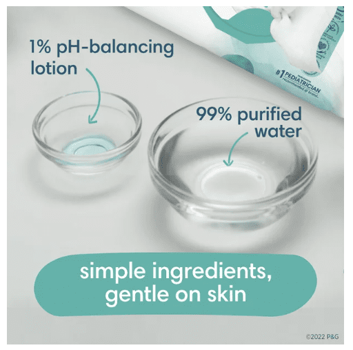Pampers Aqua Pure Wipes are made with 99% pure water for our simplest formula