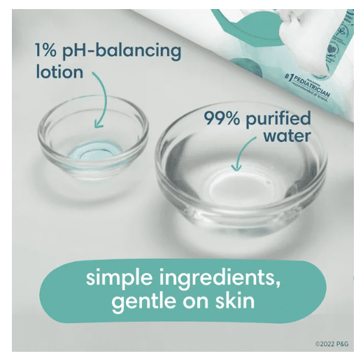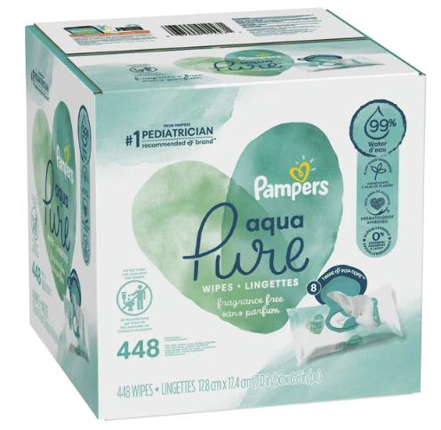 Our simplest formula; Pampers Aqua Pure baby wipes are made with 99% purified water. Perfect for sensitive skin; Aqua Pure water wipes are hypoallergenic and free of alcohol; fragrance; parabens and latex* for a soft and gentle clean. Aqua Pure wipes help restore skin's pH better than the leading super-premium baby wipe. Plus; each pack includes our handy 1-Wipe POP TOP; which keeps wipes from drying out. From Pampers; the #1 pediatrician recommended brand. For purely healthy skin; use Pampers Aqua Pure wipes together with Pampers Pure Protection diapers. (*No rubbing alcohol and no natural rubber latex)