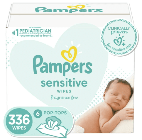 Clinically proven for sensitive skin; Pampers Sensitive baby wipes are thick and gentle for a soothing clean. For less waste; our unique pop-top helps keep these wet wipes fresh; and only dispenses one at a time. Hypoallergenic; Pampers Sensitive wipes are alcohol-free; fragrance-free; paraben-free; and latex-free.*