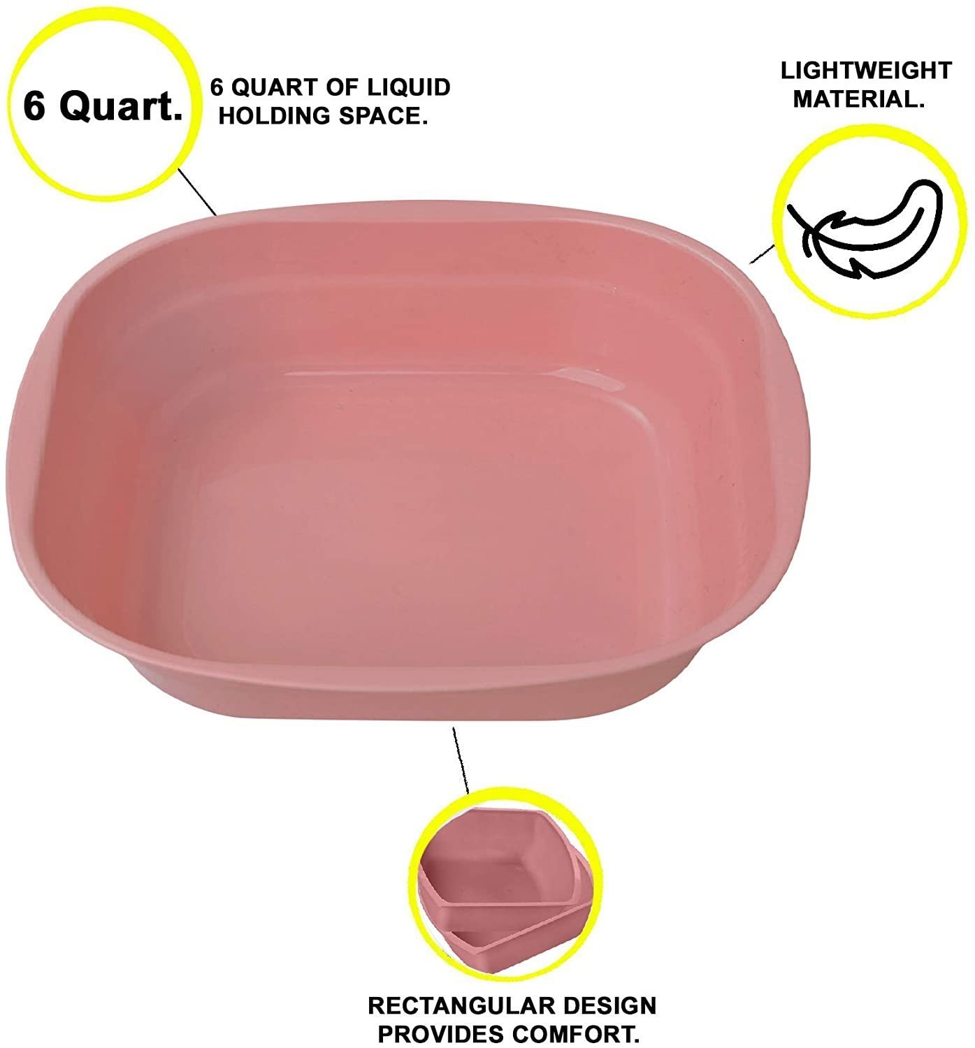 Polypropylene Wash Basins 6 Quart. Pack of 50 Graduated Rectangular Portable Dishpan Tub Dusty Rose Washing Basins for Handwashing Laundry; Cleaning and Gardening and More