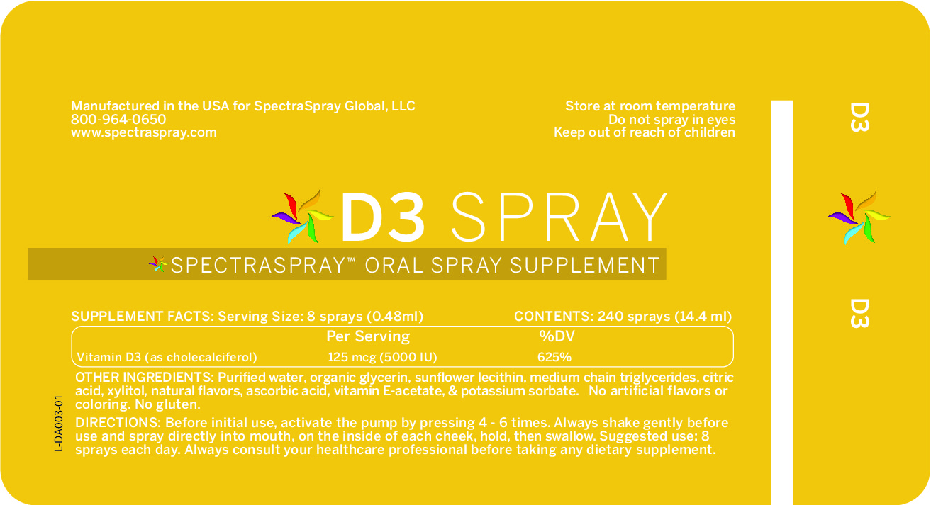 SpectraSpray™ Family Wellness Oral Spray Vitamin Kit is an easy to use vegetarian spray supplements to help keep your family well, support energy levels, immune response and metabolic function while providing vitamins that are often deficient in diet alone. Dose adjustable for all ages. Superior oral absorption provides effective results. Take it anytime, anywhere with no need for food or water. Never forget to take your vitamins again. • Meets 100% of RDA requirements • Safe limits provided • Supports immune health with Vitamin C, D, E, Lysine and Zinc • Supports metabolic function with fulvic minerals • Dose adjustable for all ages • Cavity protective Xylitol Diabetic & Bariatric patient friendly. TSA compliant. Sugar free, gluten free, dairy free. No binders, fillers or allergens. Non-GMO. Made in USA. 30 servings per tube | 240 sprays | 8 sprays each. Active Ingredients: MULTI VITAMIN: Vitamin C -12 mg, Vitamin D3 as Cholecalciferol- 500 IU, Vitamin E -15 IU, Thiamin- 1.5 mg, Niacin -10 mg, Vitamin B6- 2 mg, Folate- 400 mcg, Vitamin B12 as Methylcobalamin- 12 mcg, Pantothenic Acid- 10 mcg, Biotin- 500 mcg , Trace Minerals (Fulvic) IMMUNE SPRAY- Sodium L-ascorbate (vitamin C / buffered); vitamin E-acetate; zinc gluconate; L-lysine HCl; cholecalciferol. D3 ACTIVE: 5000 IU Vitamin D3; Cholecalciferol (Dose Adjustable)